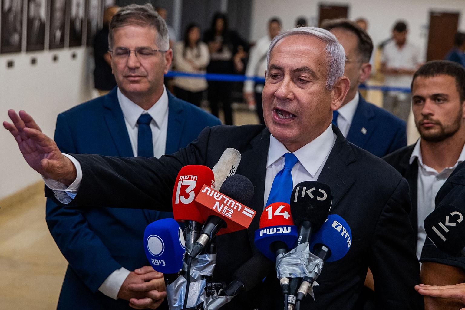 Former Israeli prime minister Benjamin Netanyahu speaking to the media on June 20, 2022.