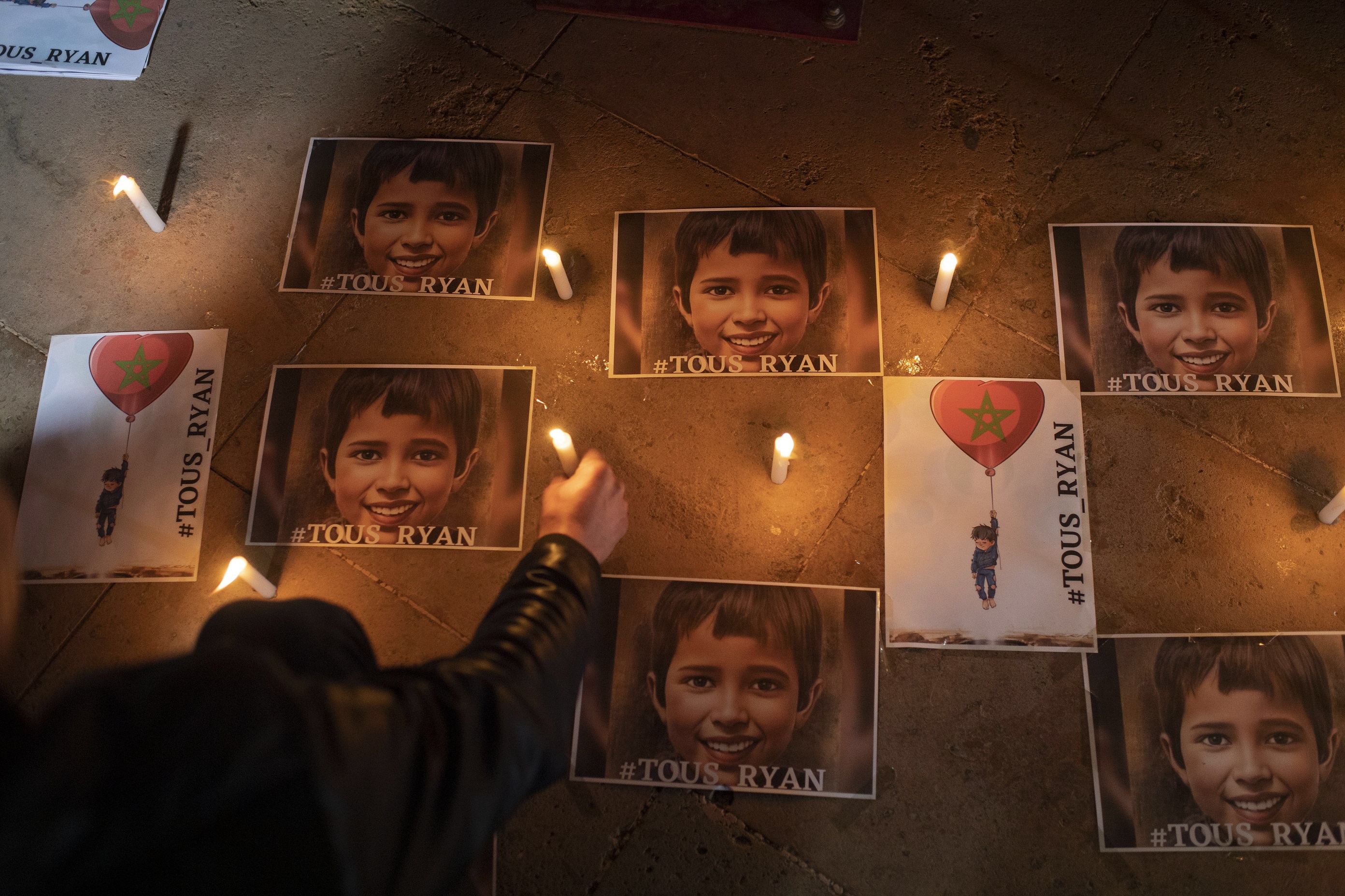 People take part in a vigil for five year old Rayan Awram, who died after falling down a well in Morocco.