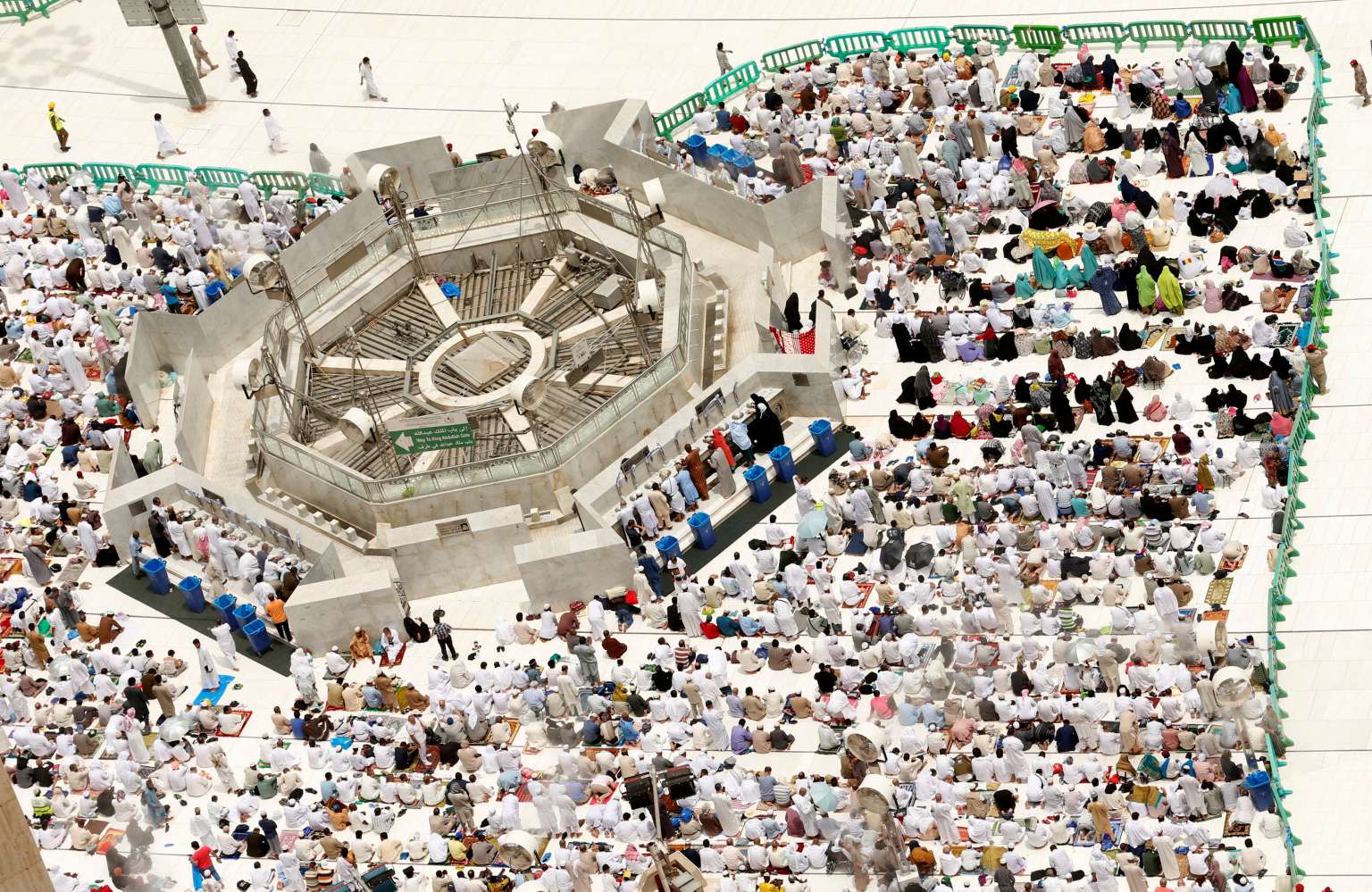 During the main weekly Friday prayers, the white-clad throng made the area around the Kaaba resemble a snow-dusted field from above.