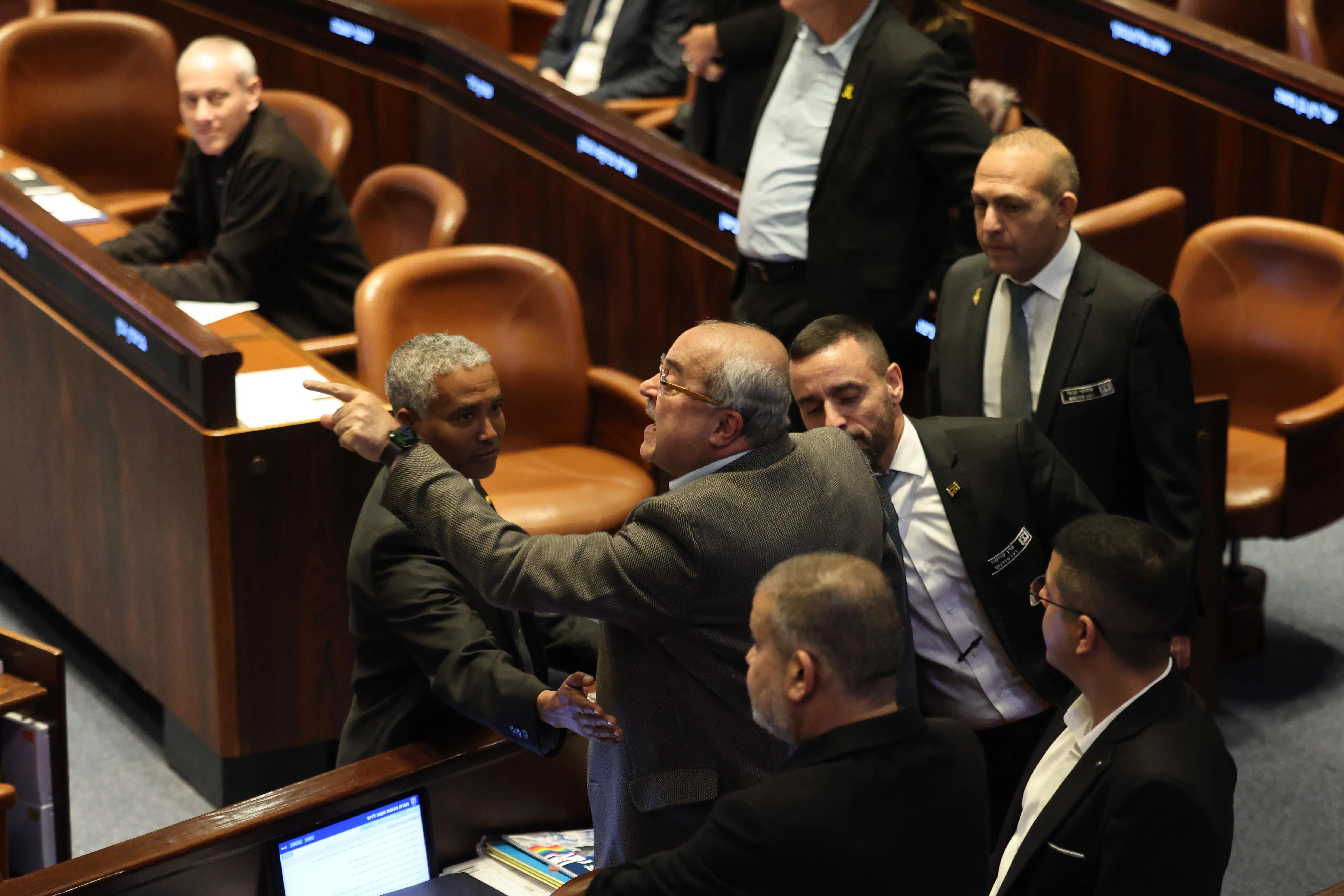Israeli Arab Knesset member Ahmad Tibi is asked to leave the chamber by Knesset ushers during a debate on the Bill on Dec 24.