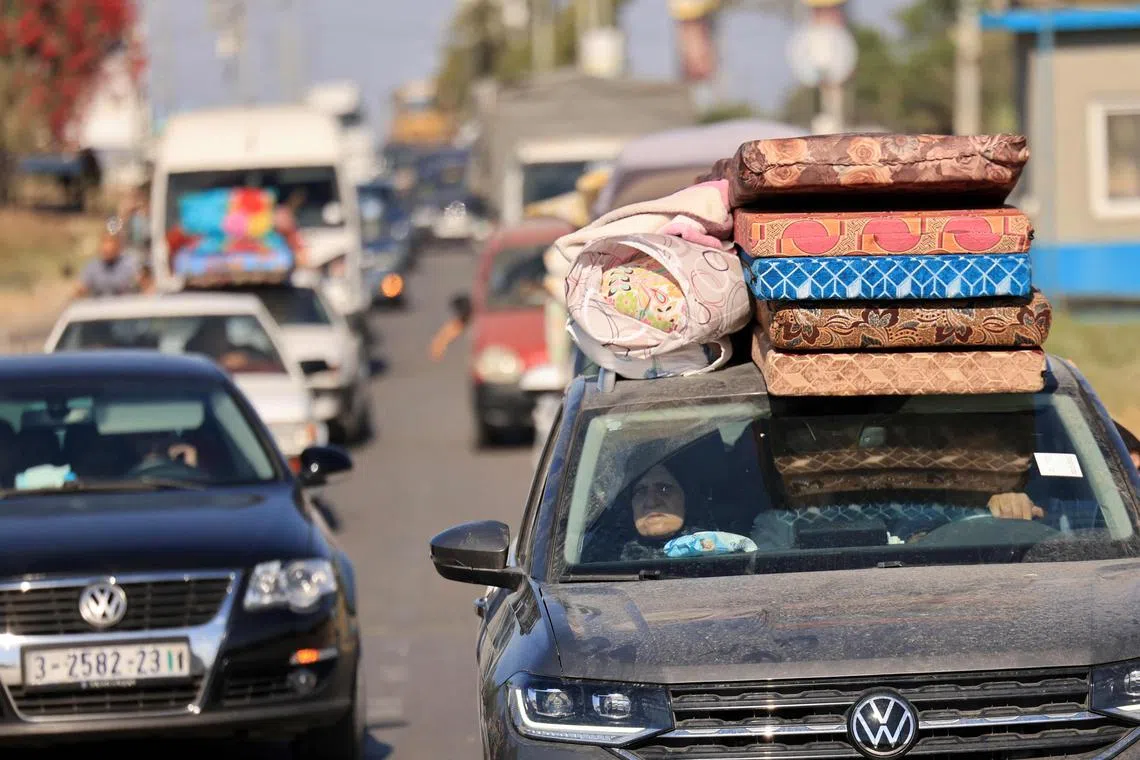 Palestinian families flee Gaza City with their belongings, following the Israeli army’s warning to leave their homes and move south before an expected ground offensive.