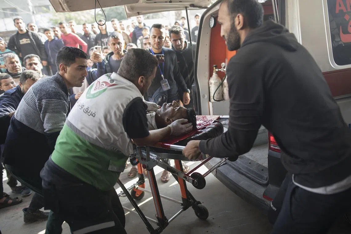Palestinians transporting an injured person to Nasser Hospital in Khan Younis, southern Gaza Strip, on Dec 17.