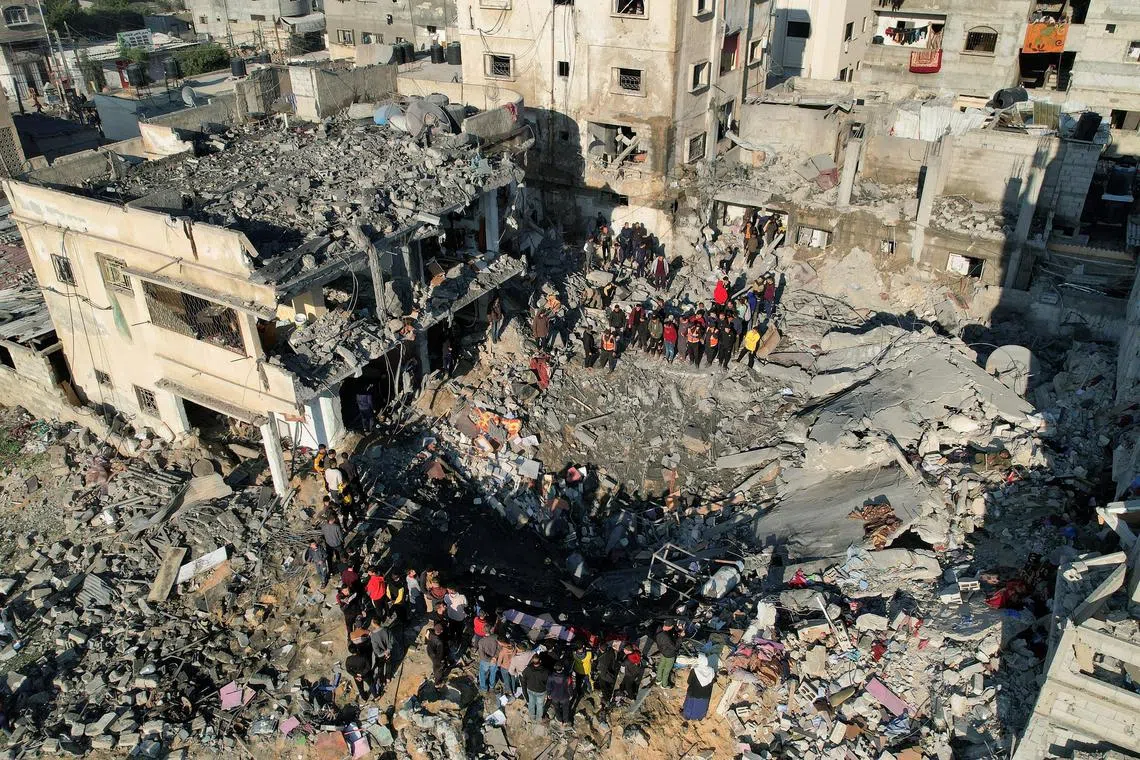 Palestinians gathering at the site of an Israeli strike on a house in Rafah, southern Gaza Strip, on Dec 19.