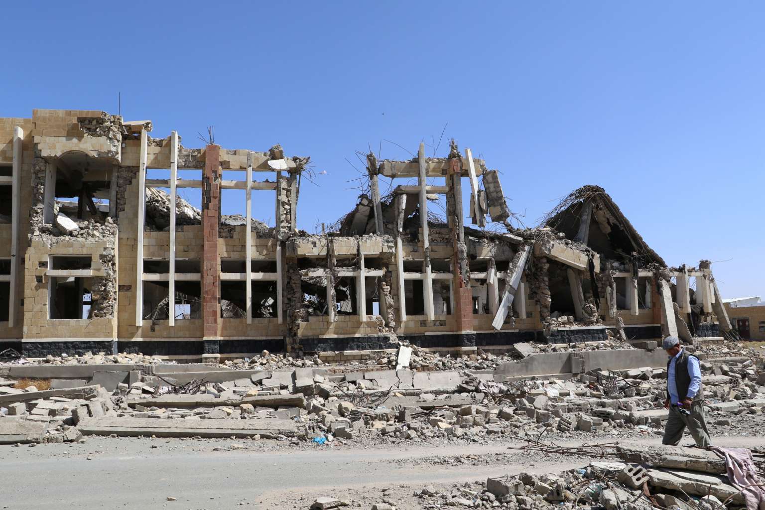 A man walks past a building destroyed by recent Saudi-led air strikes in the northwestern city of Saada, Yemen on Feb 22, 2017.
