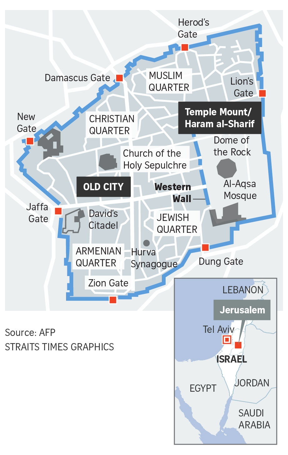 The holy compound lies in east Jerusalem, seized by Israel in the Six-Day War of 1967 and later annexed in a move never recognised by the international community.