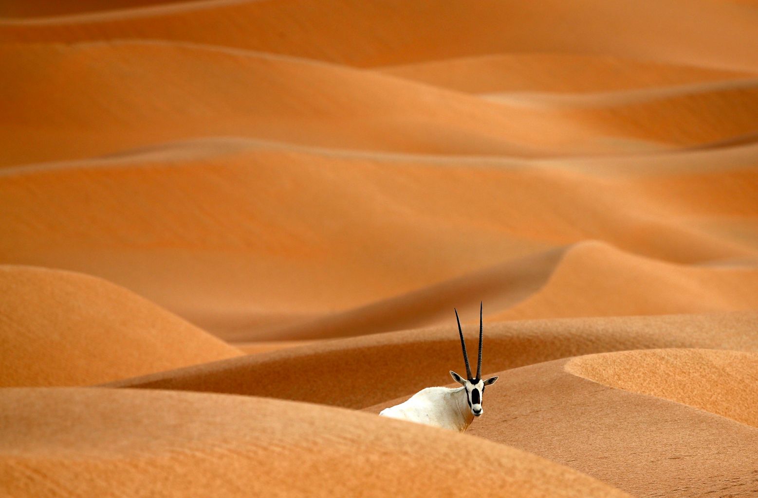 An Arabian Oryx at the Arabian Oryx Sanctuary in Umm Al-Zamool, near the border with Oman and Saudi Arabia.