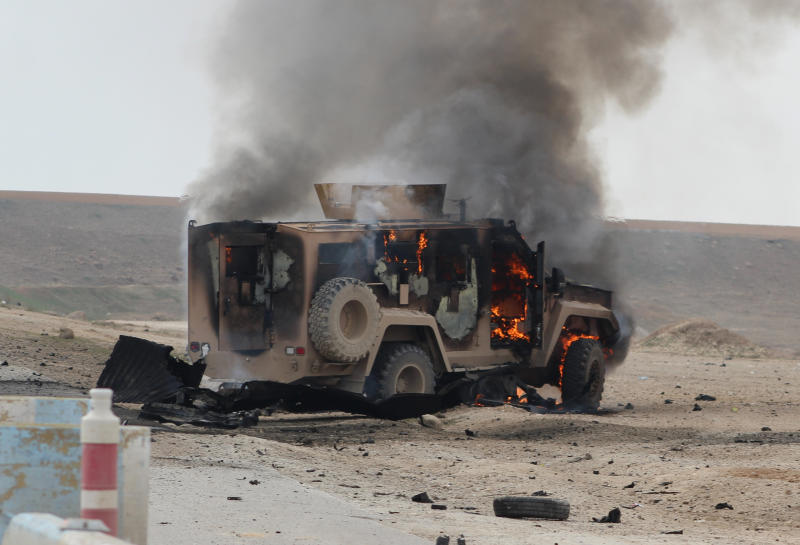 An SDF commander there told Reuters that ISIS had sent explosive-ridden vehicles towards advancing fighters the night before. Air strikes destroyed two of them, and the SDF fired on a third to blow it up, he said.
