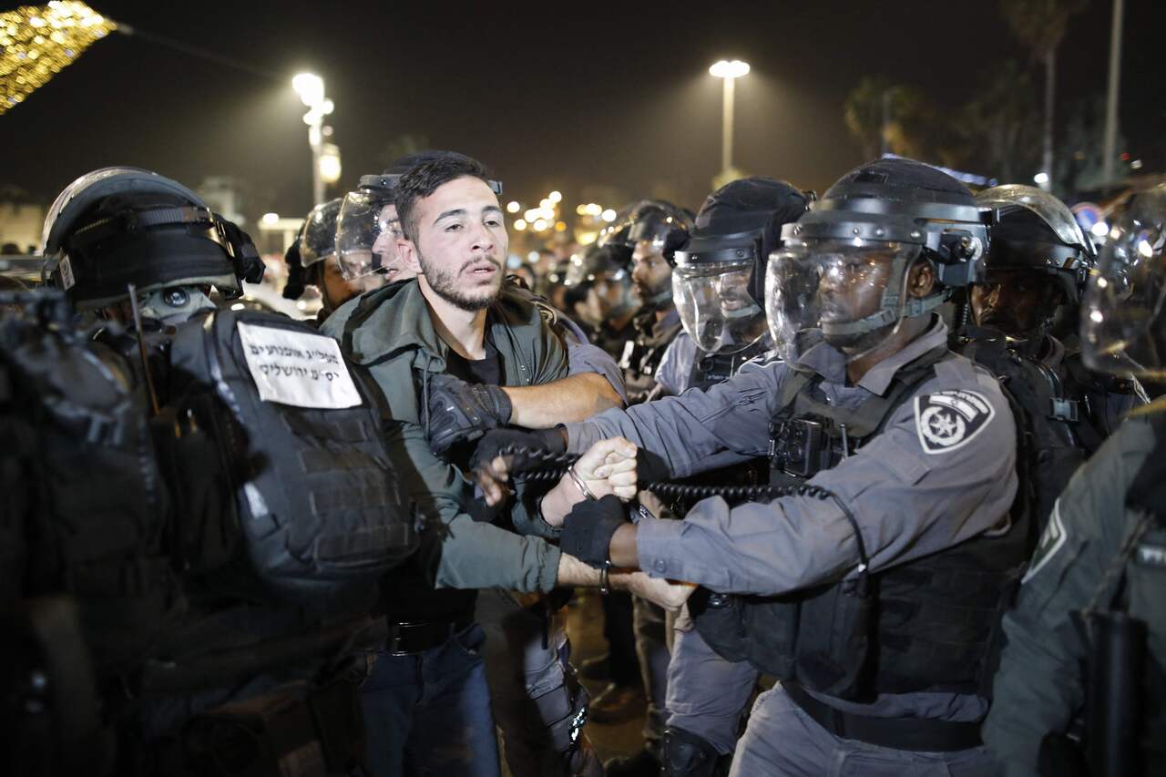 Israeli security forces detain a Palestinian protester in Jerusalem's Old City, on April 29, 2021.