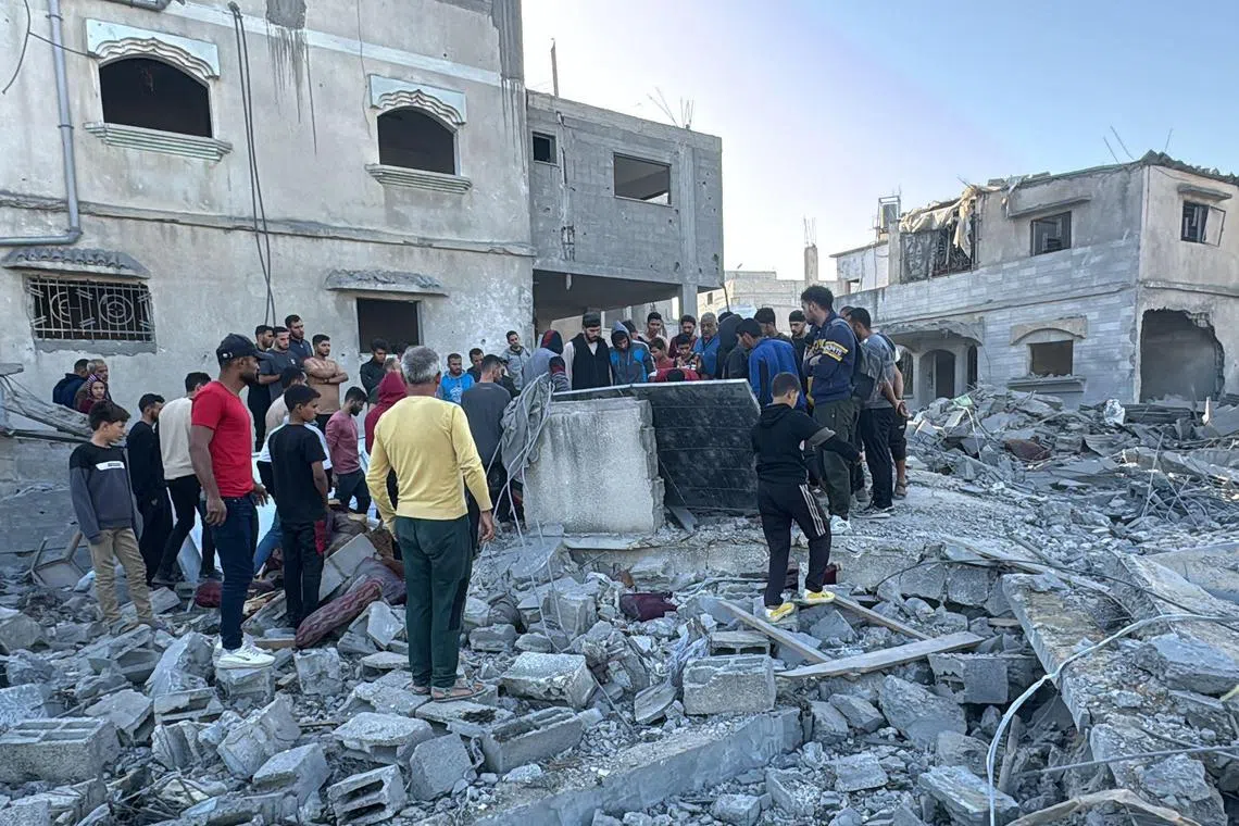 Palestinians inspecting the damage after an overnight Israeli air strike in Beit Lahia the northern Gaza Strip on Oct 27, 2024.