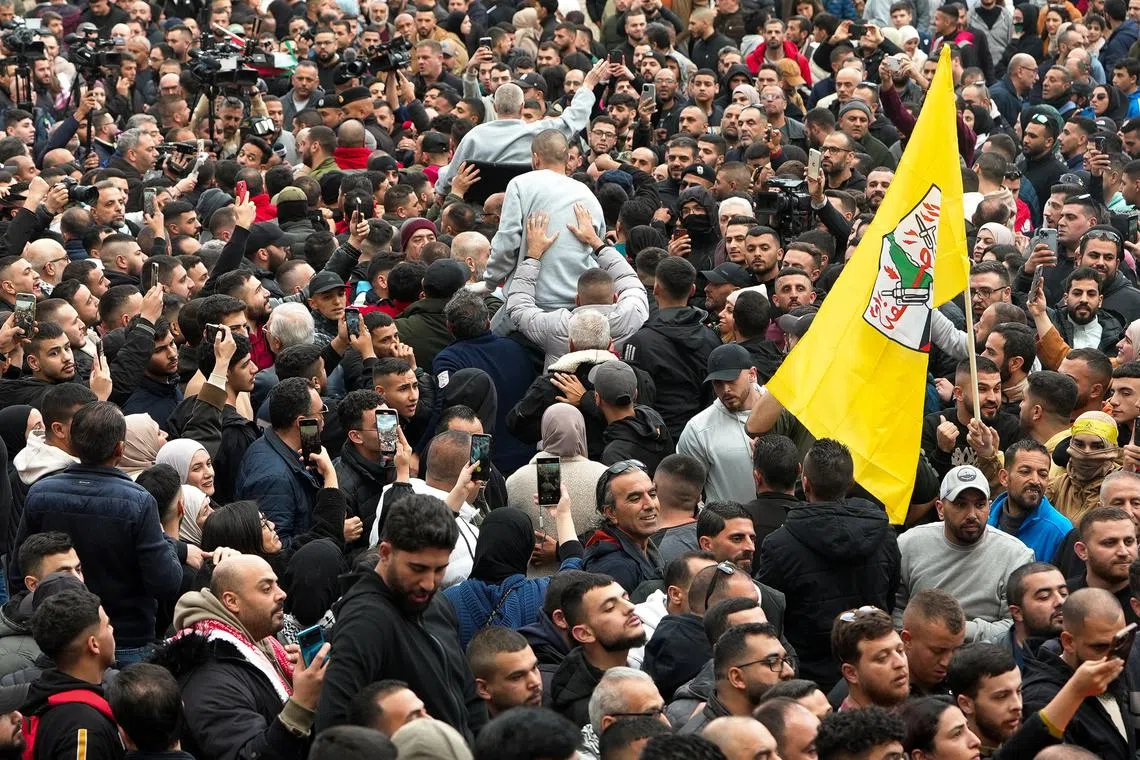 In Ramallah, in the Israeli-occupied West Bank, many carried freed detainees on their shoulders through jubilant crowds that had waited hours for the buses carrying the prisoners to arrive.