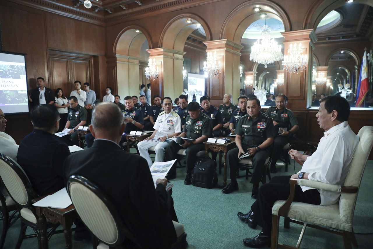 President Rodrigo Duterte (right) held an emergency meeting with his defence secretary and top military and police officials on Jan 5 to discuss the evacuation plans.