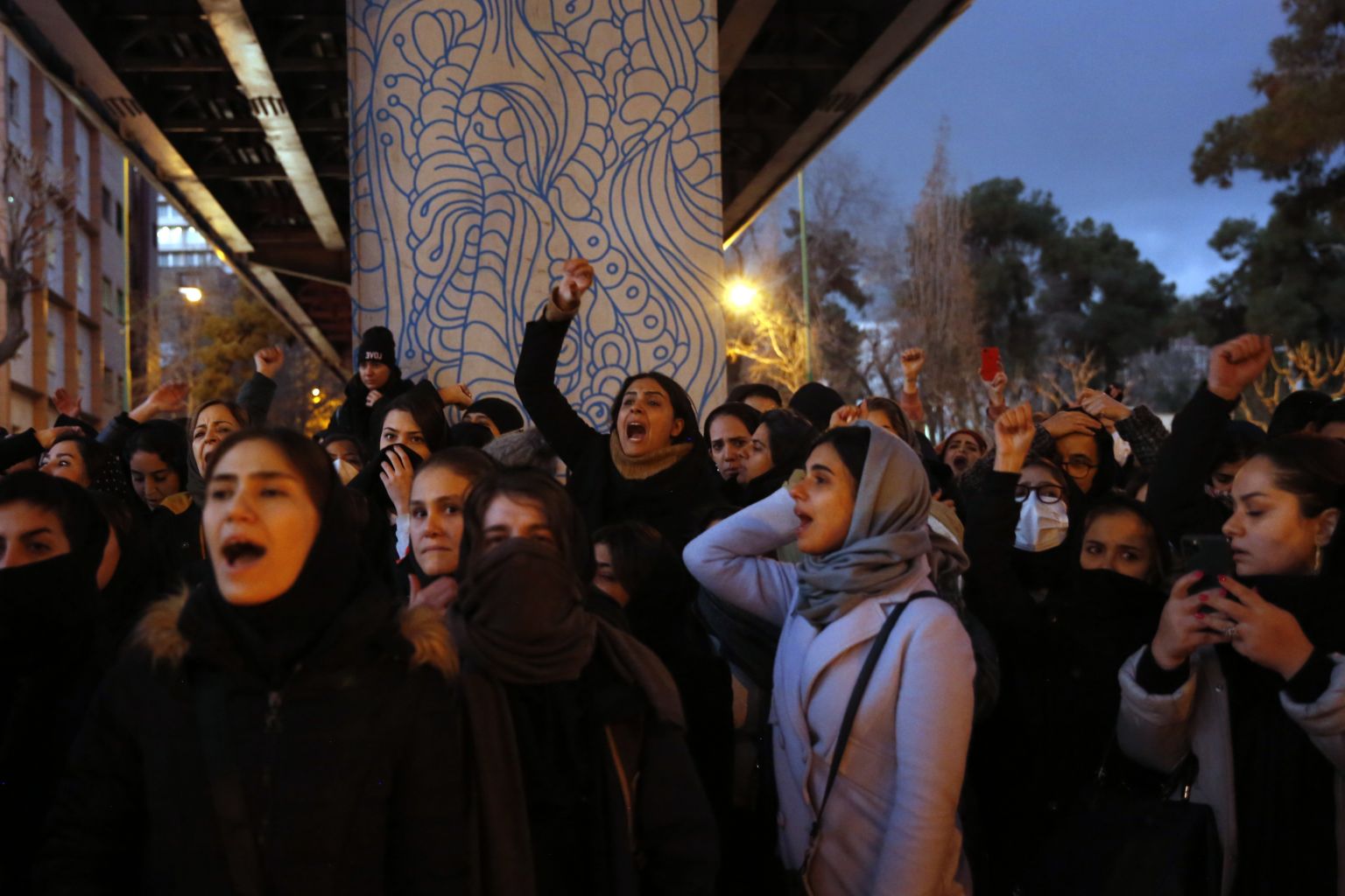 Iranians protest to show their sympathy to victims of Ukraine International Airlines Boeing 737-800 in front of the Amir Kabir University in Teheran on Jan 11, 2020.