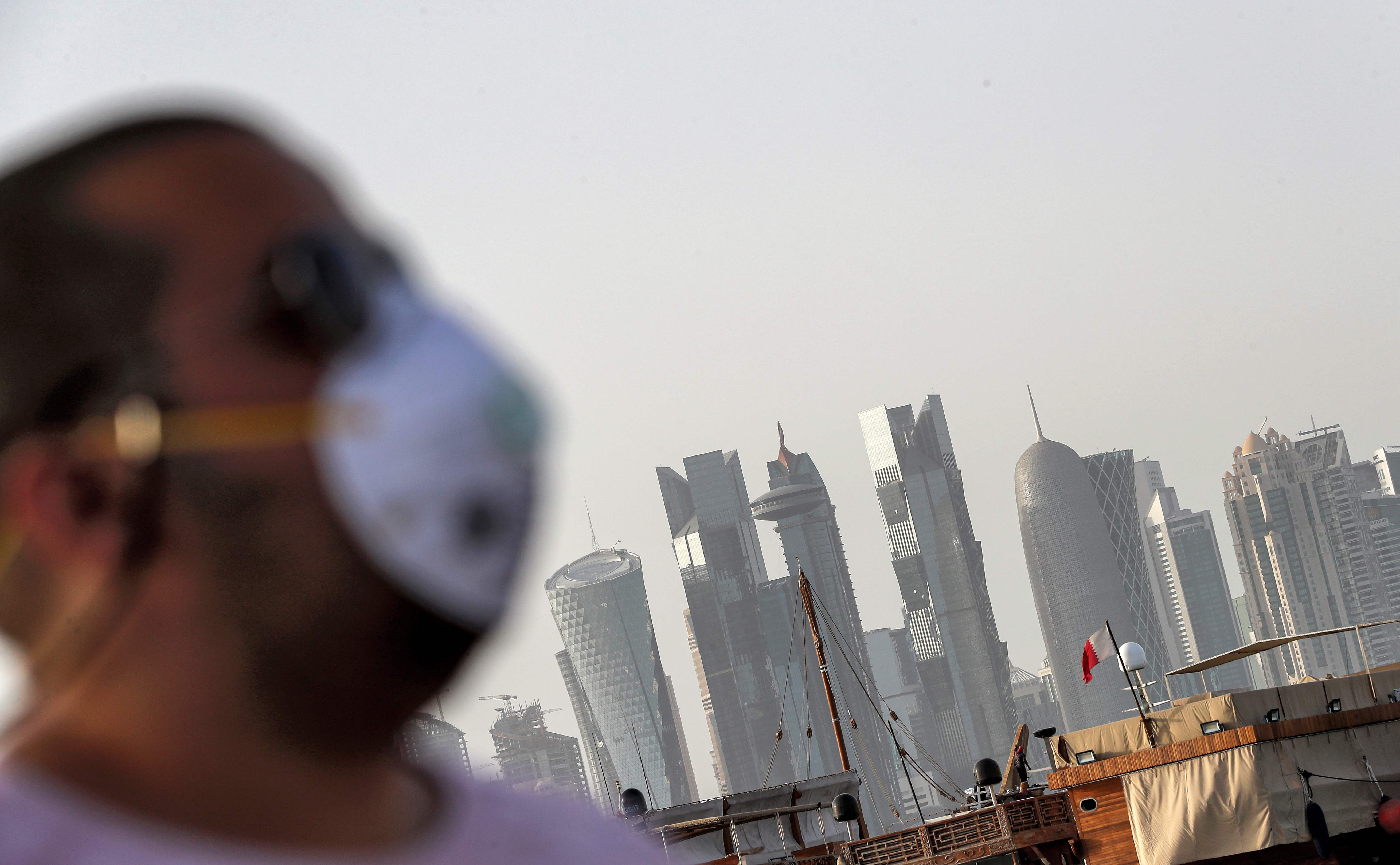 A man walks along the Doha corniche in the Qatari capital on March 16, 2020.
