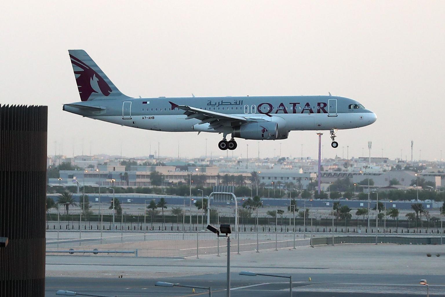 A Qatar Airways plane lands at the Hamad International Airport in the Qatari capital Doha on June 12, 2017.
