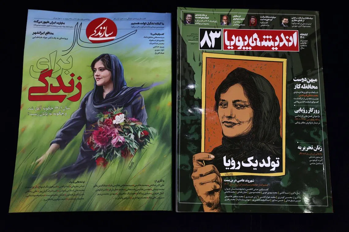 Iranian magazines reporting on the death of Ms Mahsa Amini, who died in the custody of the morality police for allegedly violating hijab rules.