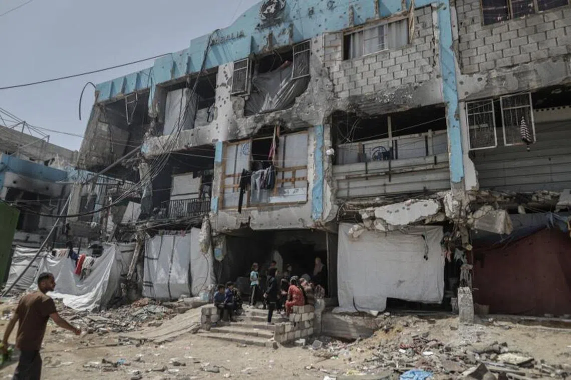 A UN Relief and Works Agency building damaged by an Israeli strike in the Jabaliya refugee camp in northern Gaza.