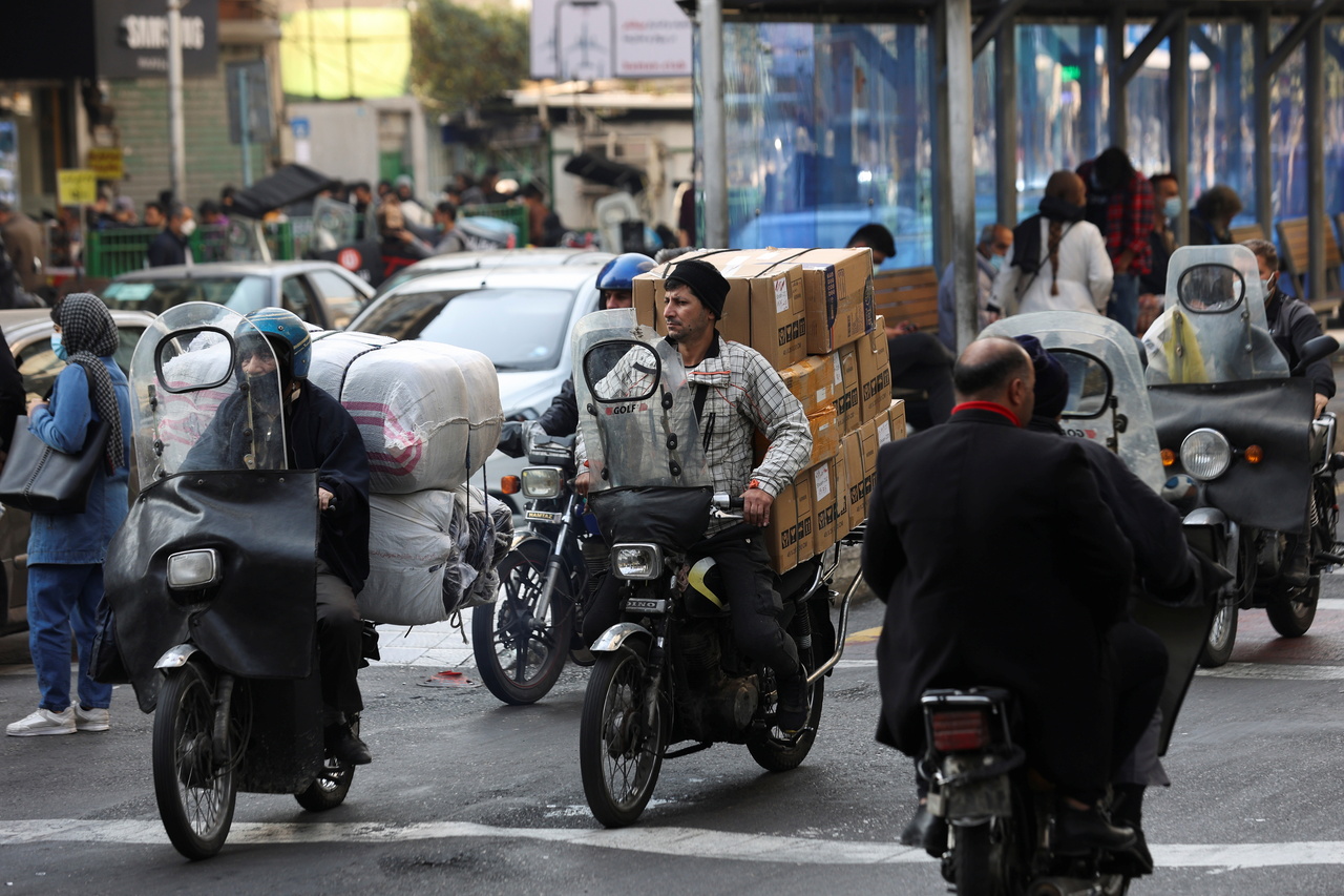 People ride their motorbikes along a street Tehran, Iran, on Nov 24, 2021.
