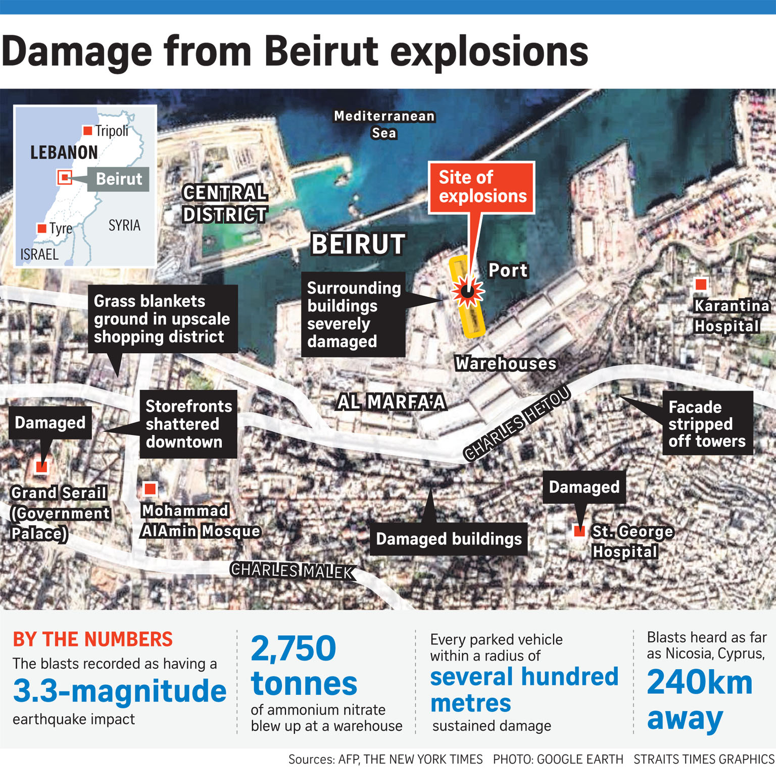 Beirut governor Marwan Abboud spoke of "an apocalyptic situation" which he said may have made 300,000 people temporarily homeless and would cost the country over US$3 billion (S$4.1 billion).