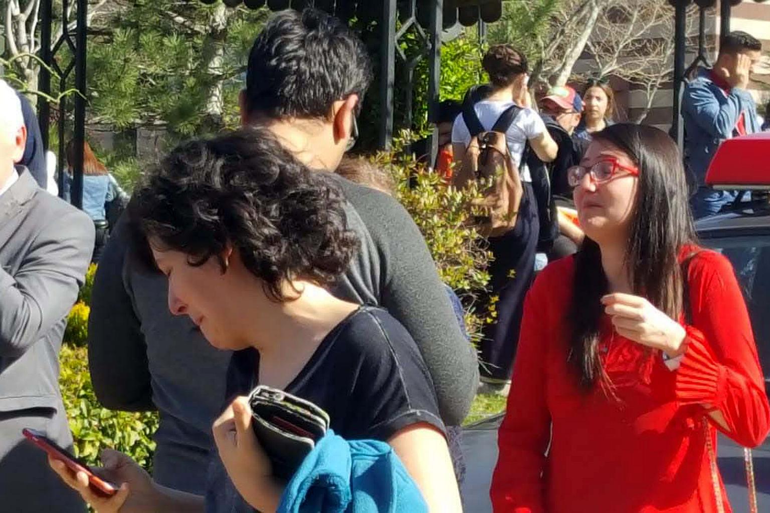 People gather outside the Osmangazi University after a university employee killed four fellow staff members in a shooting, in the western Turkish city of Eskisehir on April 5, 2018.