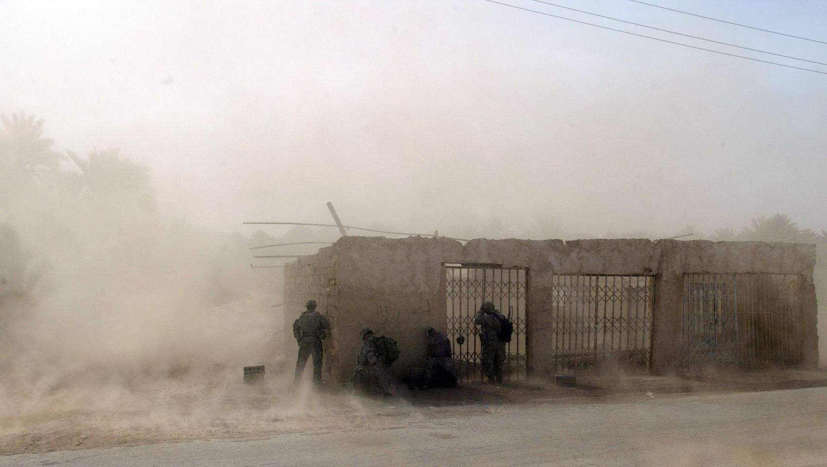 A 2008 photo shows soldiers at a US military base south of Baghdad.