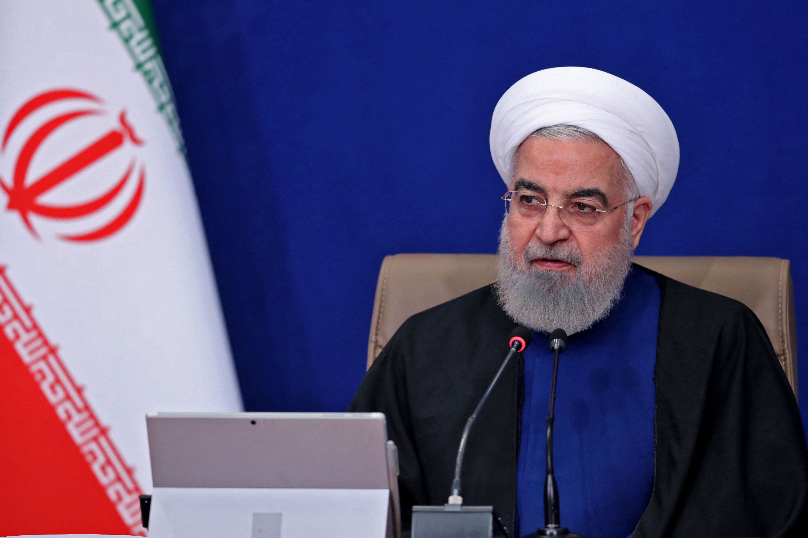 Iranian President Hassan Rouhani attends a Cabinet meeting in Teheran, on April 28, 2021.