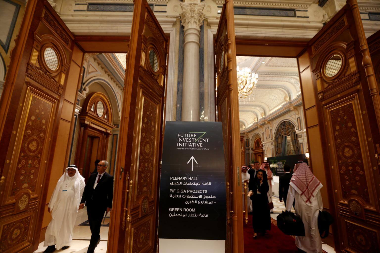 Participants walking around during the Future Investment Initiative conference in Riyadh, Saudi Arabia on Oct 24, 2017.