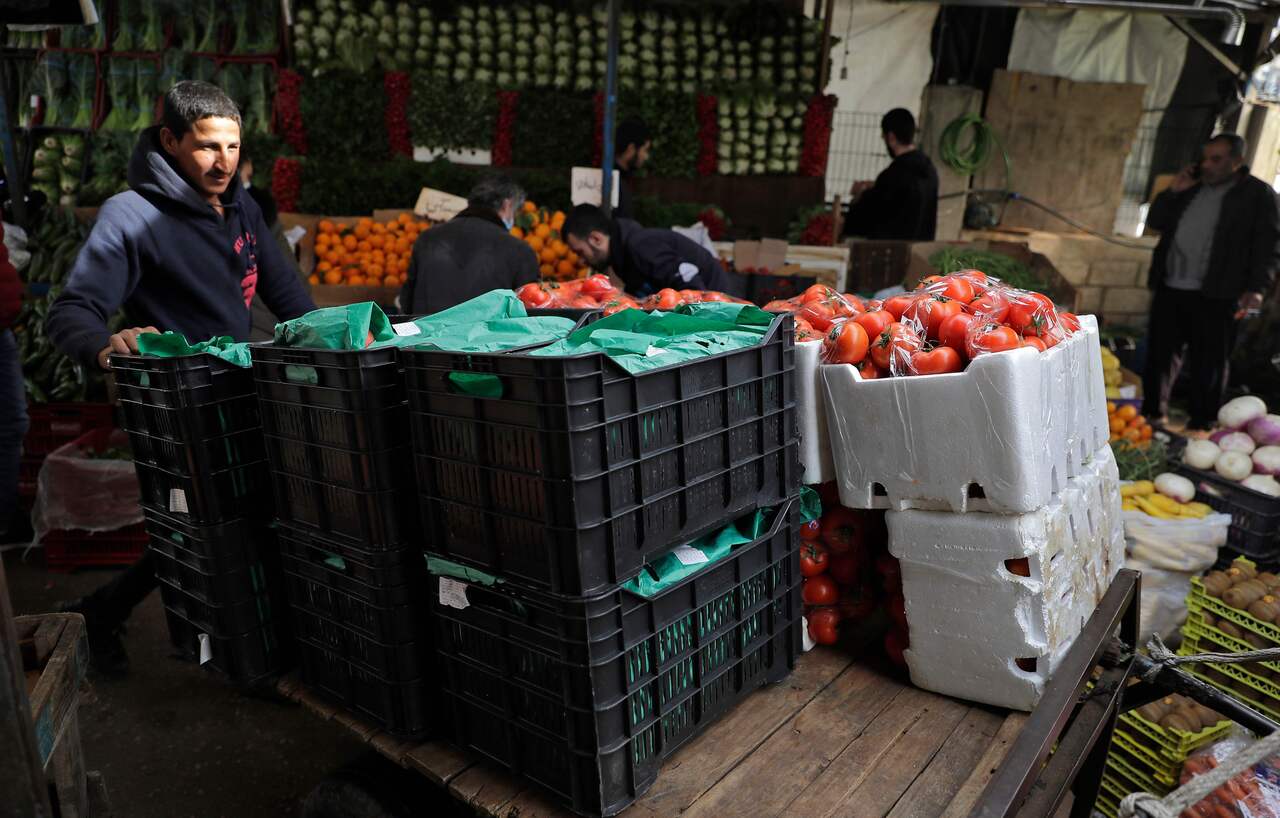 A vendor waits for costumers at a fresh produce market in the Lebanese coastal city of Tripoli, Beirut, on Jan 26, 2021.