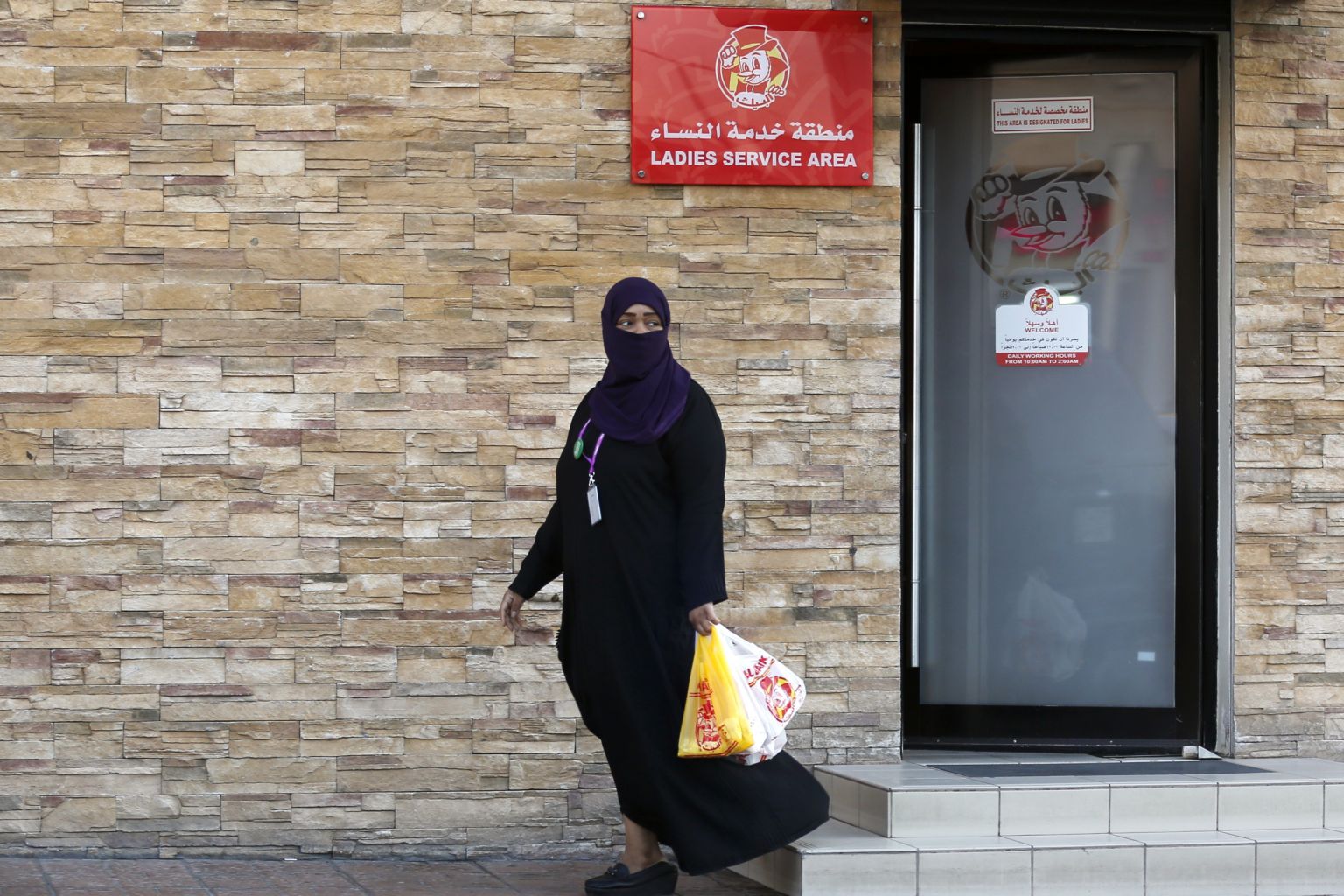 A woman leaves a ladies only service area at a restaurant in Jeddah, Saudi Arabia, on Dec 8, 2019.