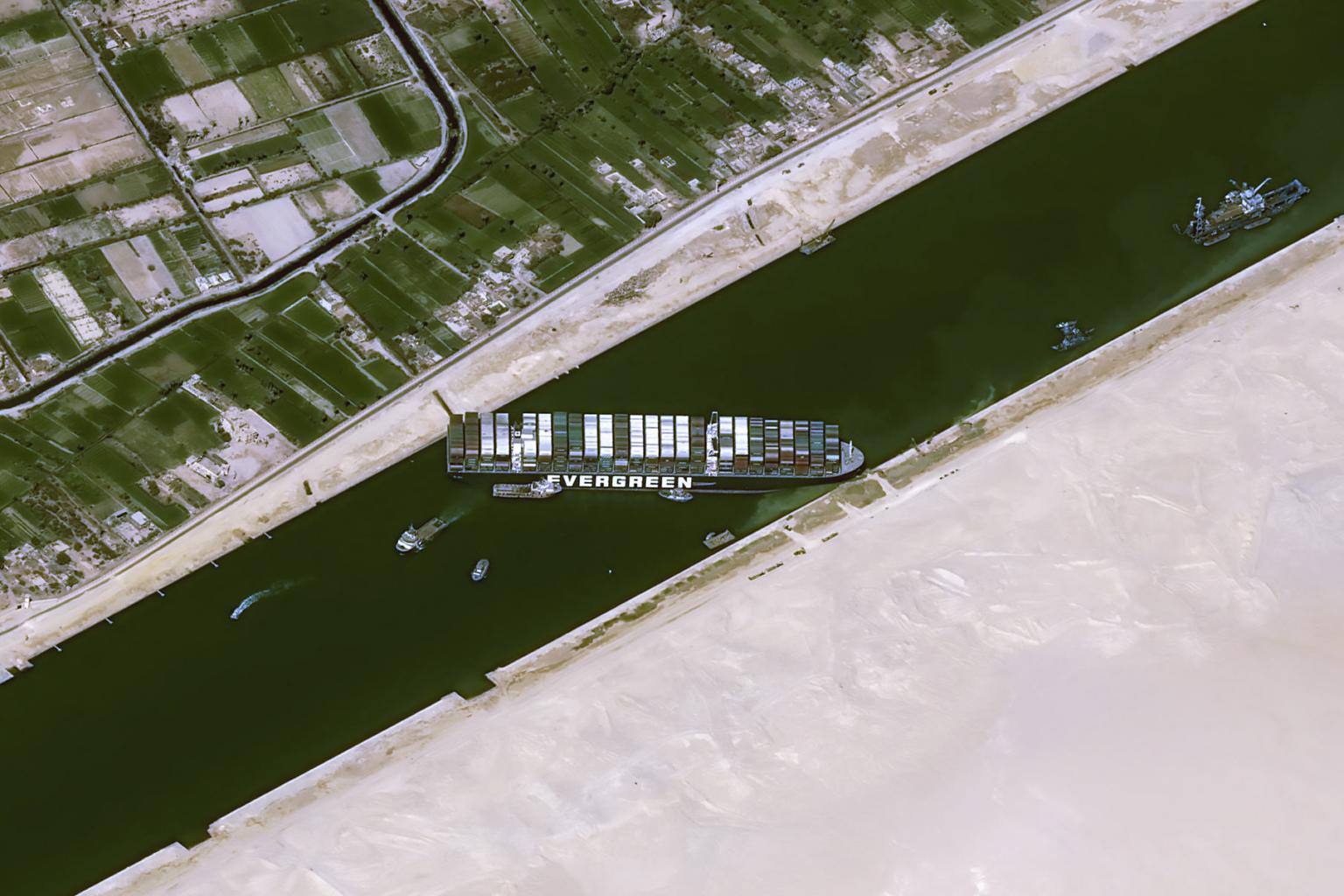 Two tugboats attempt to free the stricken Ever Given. Work to refloat the massive container ship has so far been unsuccessful.