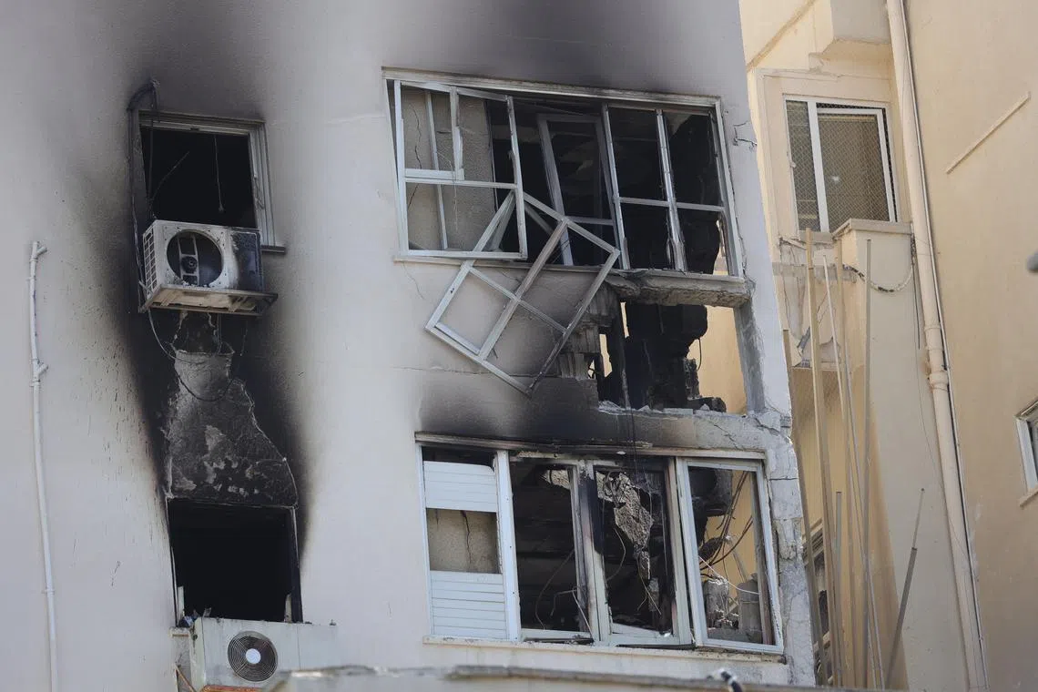 A damaged residential building in Tel Aviv following rocket launches from Gaza on Saturday.