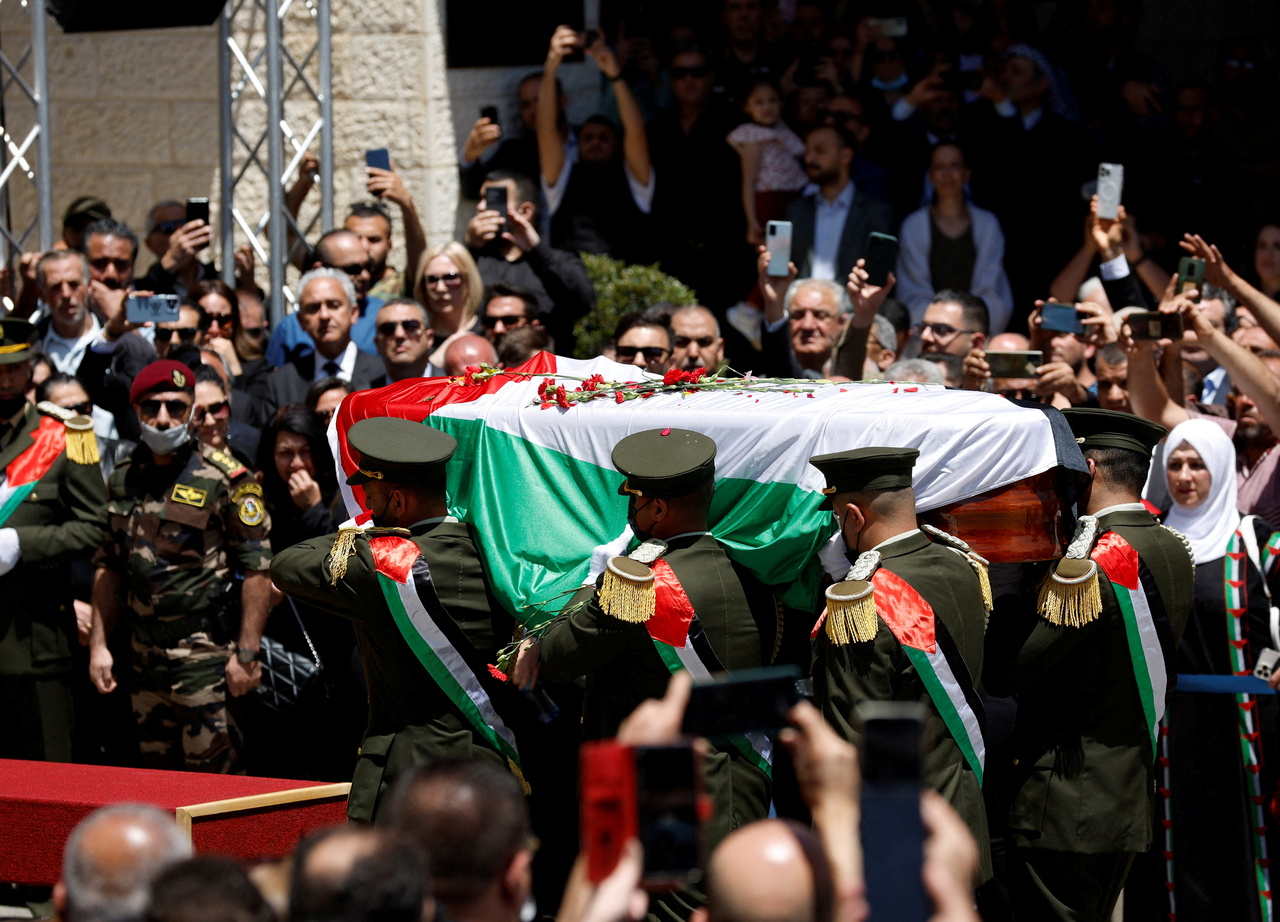 A coffin for Abu Akleh, a Palestinian Christian born in Israeli-annexed east Jerusalem, began its journey to Jerusalem to the drumbeat of a marching band, as crowds chanted slogans demanding an end to Palestinian security cooperation with Israel.