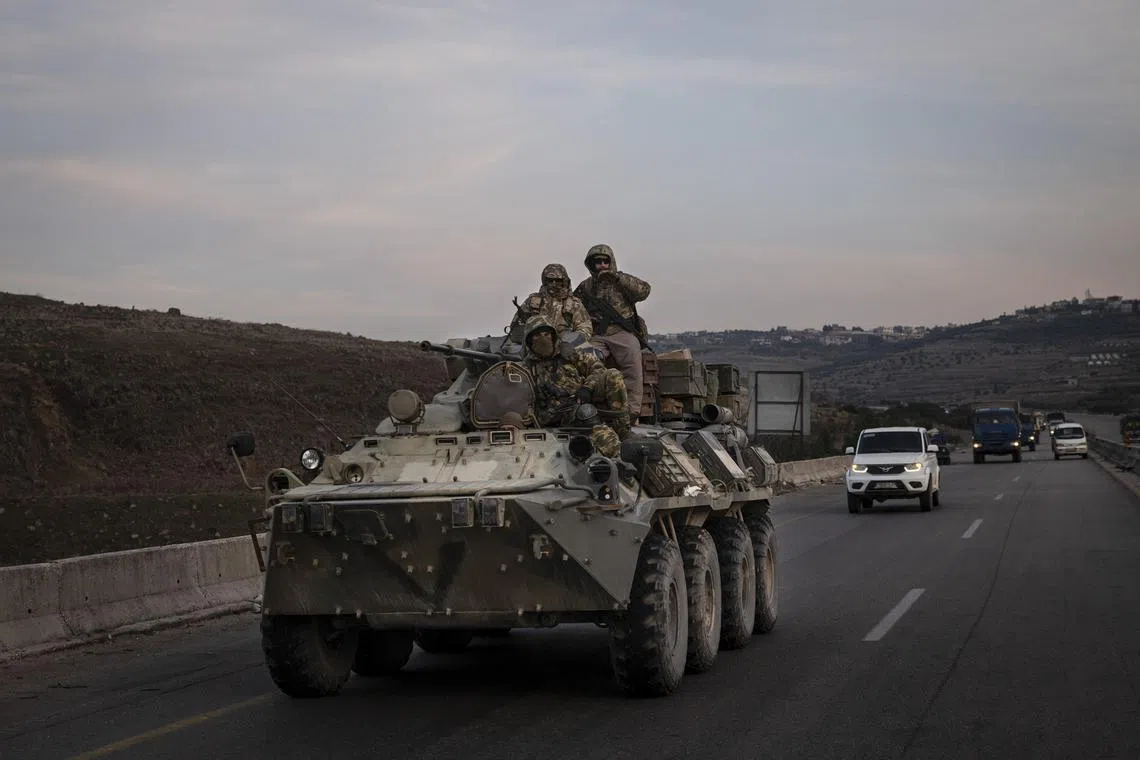 A convoy of Russian military vehicles and armoured personnel carriers on a road west of Homs, Syria, moving towards the Mediterranean Sea from their bases on Dec 15.