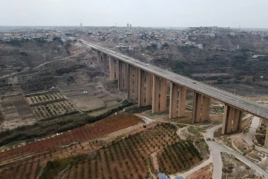 A drone view of Al-Rastan bridge in the Homs countryside after Syrian rebels pressed their lightning advance on Dec 7.