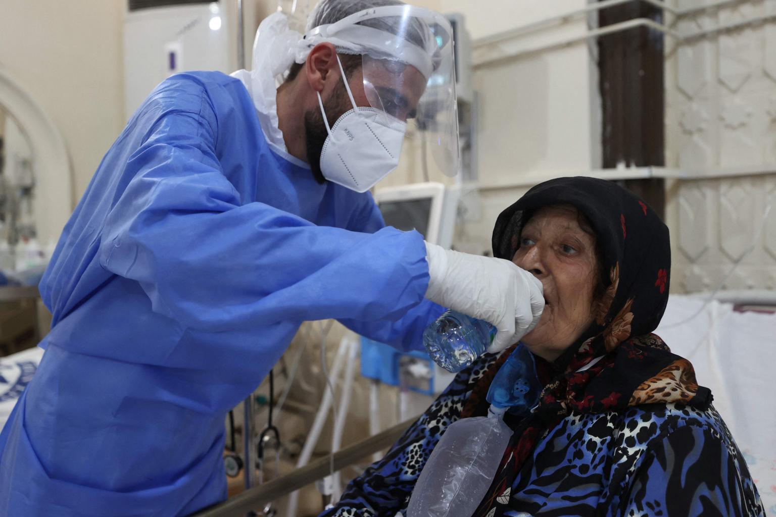 A Syrian health worker tends to a Covid-19 patient at the Ariha medical centre in the northwestern Syrian city of Idlib on Sept 13, 2021.