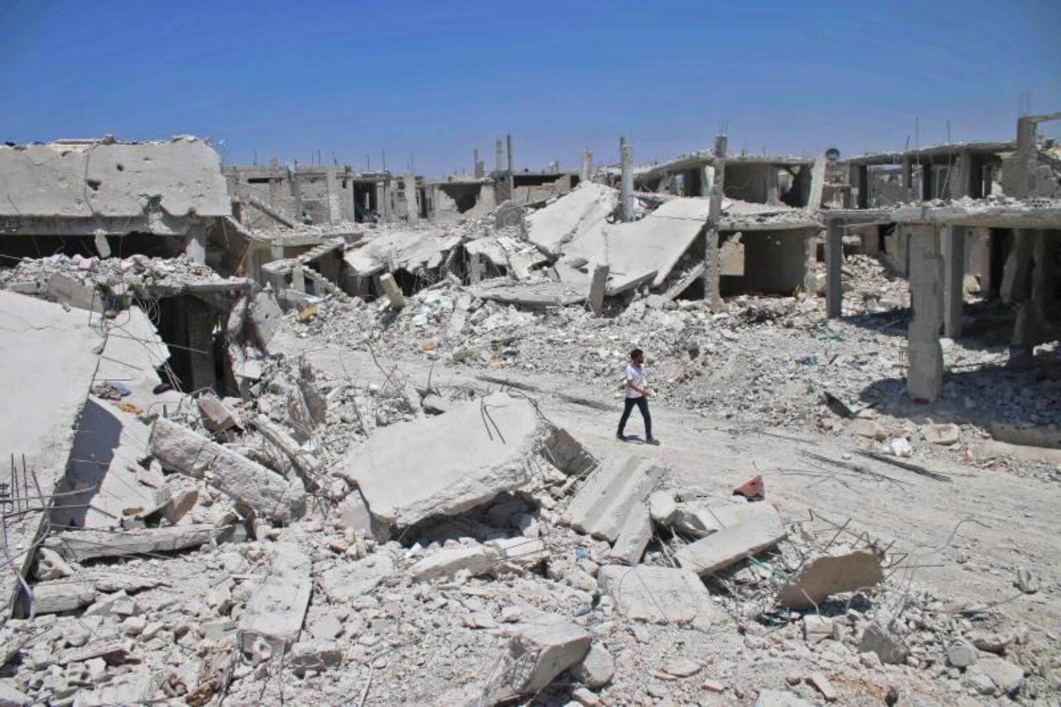 A Syrian man walks down a destroyed street in a rebel-held area in Daraa on July 19, 2017.