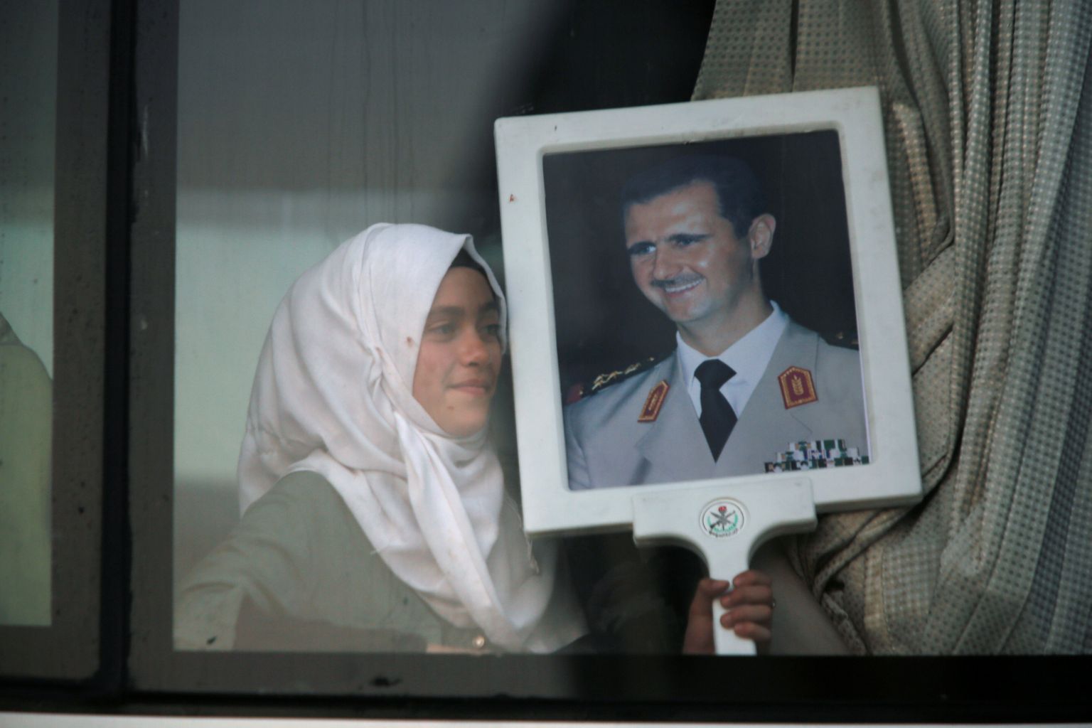 A Syrian refugee who fled to Lebanon holds a picture of Syrian President Bashar Al-Assad.