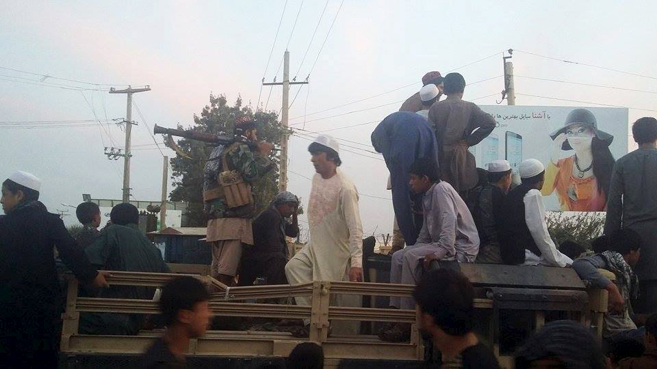 The 10-minute clip posted on Facebook opens with a shot of Kunduz main square where Taleban cadres cheer as they raise their white flag under the wary gaze of subdued-looking residents.