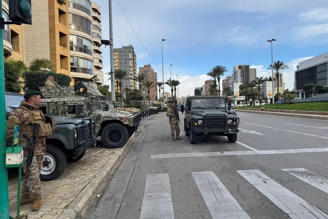 The Lebanese army securing an area in Beirut as people start to gather to attend the public funeral ceremony for former Hezbollah leaders Hassan Nasrallah and Hashem Safieddine.