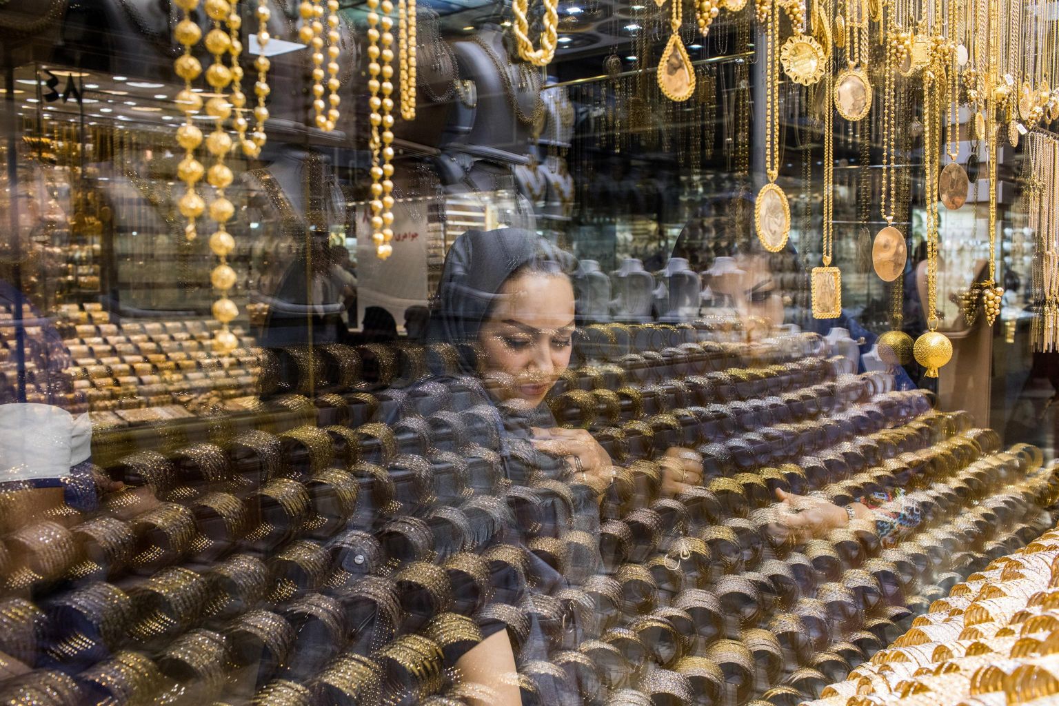 Shoppers look at jewelry shops at the grand bazaar in Tehran, Iran, on June 19, 2018.