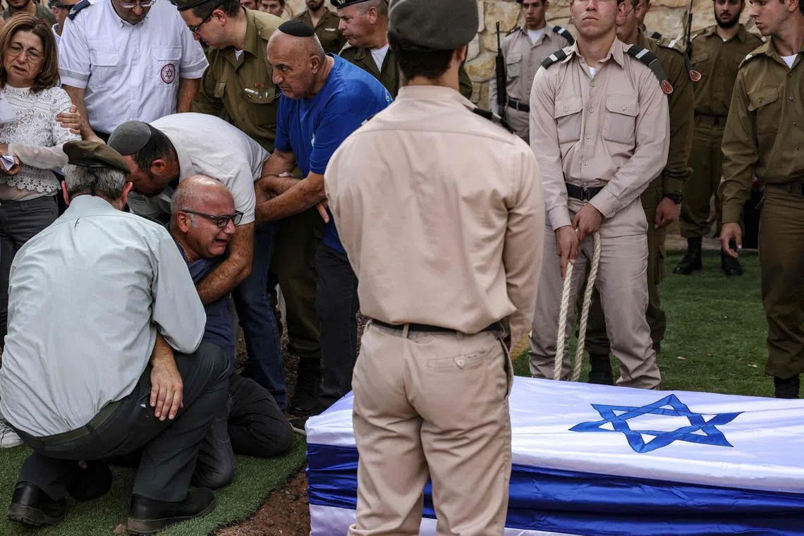 Mourners at the funeral of Ms Daniella Dana Petrenko, from Haifa, who was killed in a deadly attack by Hamas gunmen at a music festival she attended with her boyfriend.