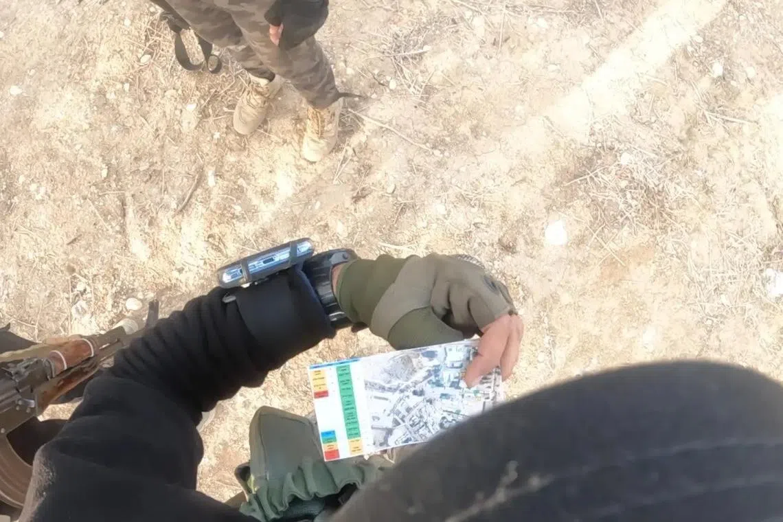 The Hamas commander reviewing a map of the base that includes the intelligence hub.
