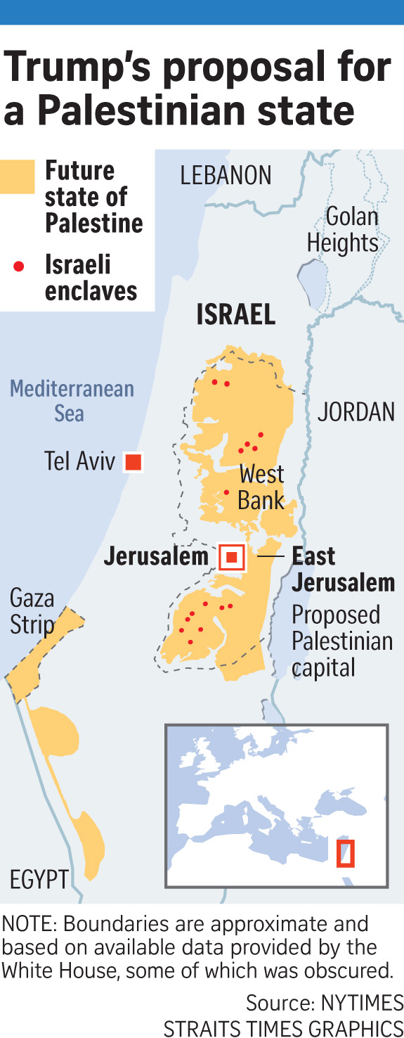 • An earlier - economic - part of the plan announced last June called for a US$50 billion (S$68 billion) investment fund to boost the Palestinian and neighbouring Arab state economies.