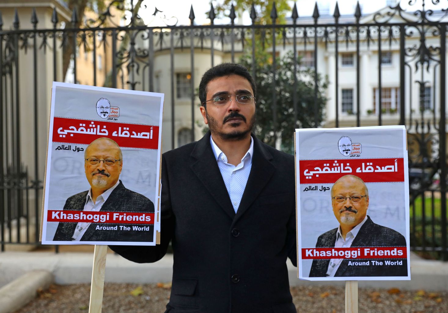 People protesting against the Khashoggi's killing outside the Saudi Arabian Embassy in London, Oct 26 2018.