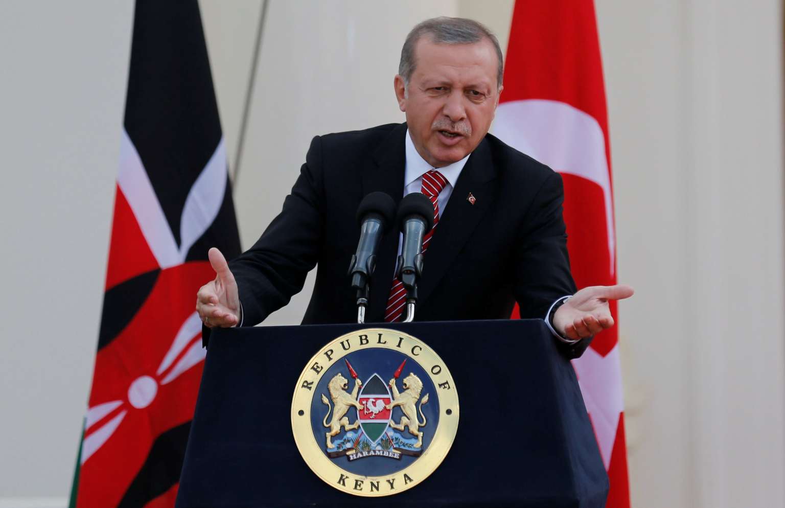 Turkish President Tayyip Erdogan addresses a news conference at State House in Nairobi, Kenya, on June 2, 2016.