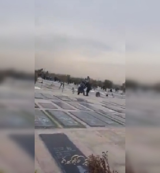 The images, which could not be verified by Reuters, showed one woman shouting "Death to the dictator" as people around her ran in the cemetery in the city of Karaj.