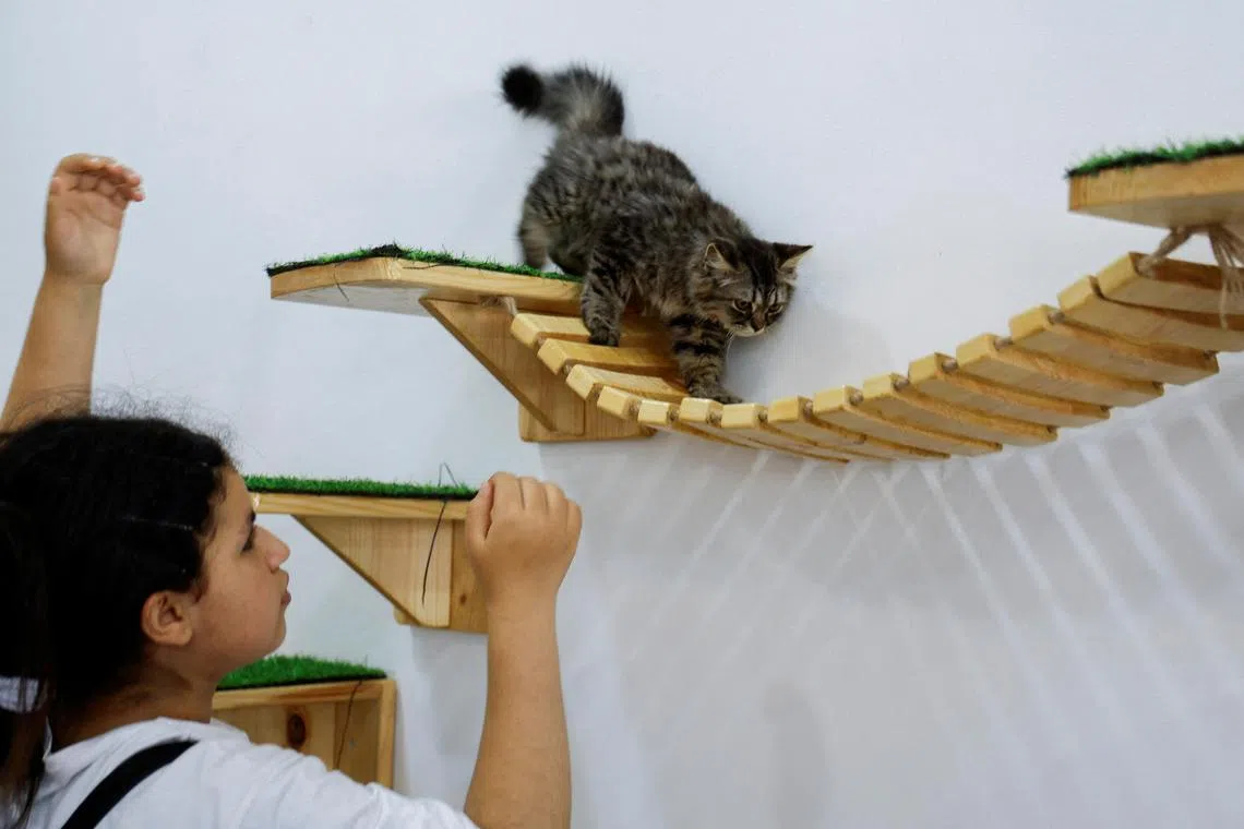 Madam Naima, who described herself as a cat lover, opened Meow Cat Cafe on Aug 17. She envisioned the cafe, the first of its kind in the Gaza Strip, to be a refuge from stress for customers.