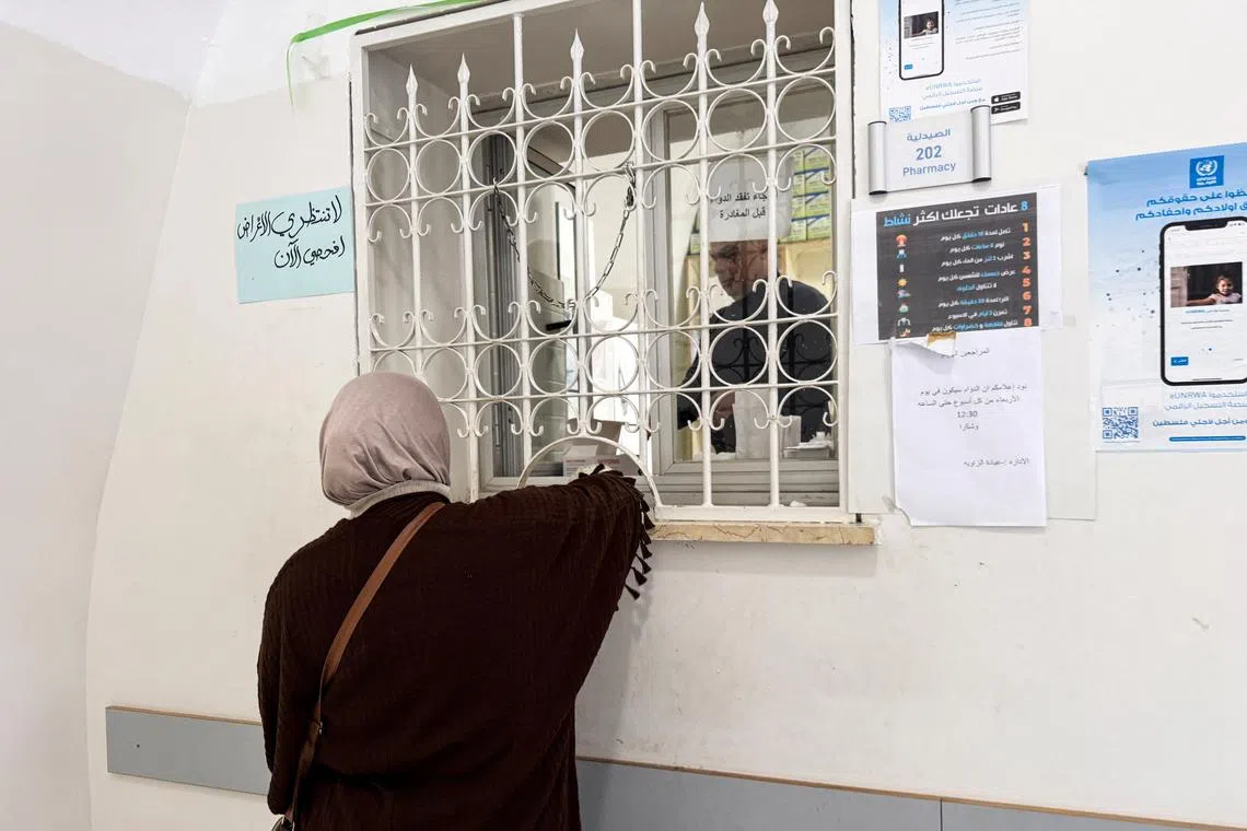 A woman picks up medicine from a pharmacy at a UNRWA health centre in Jerusalem’s Old City.