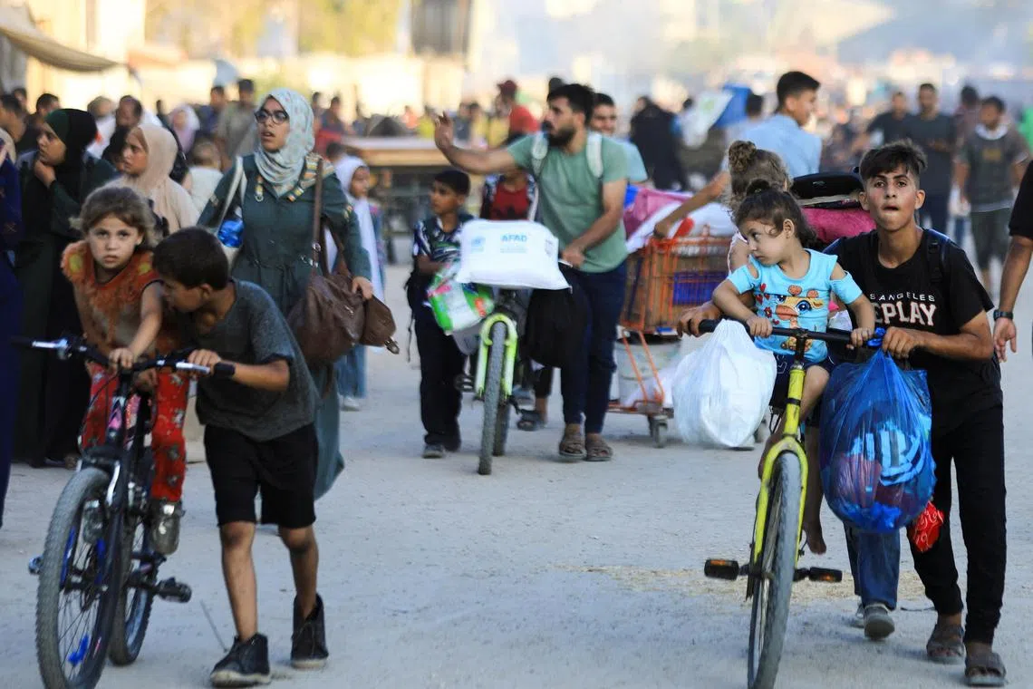 Palestinians flee the eastern part of Gaza City on bicycles, on foot and with whatever they have left.