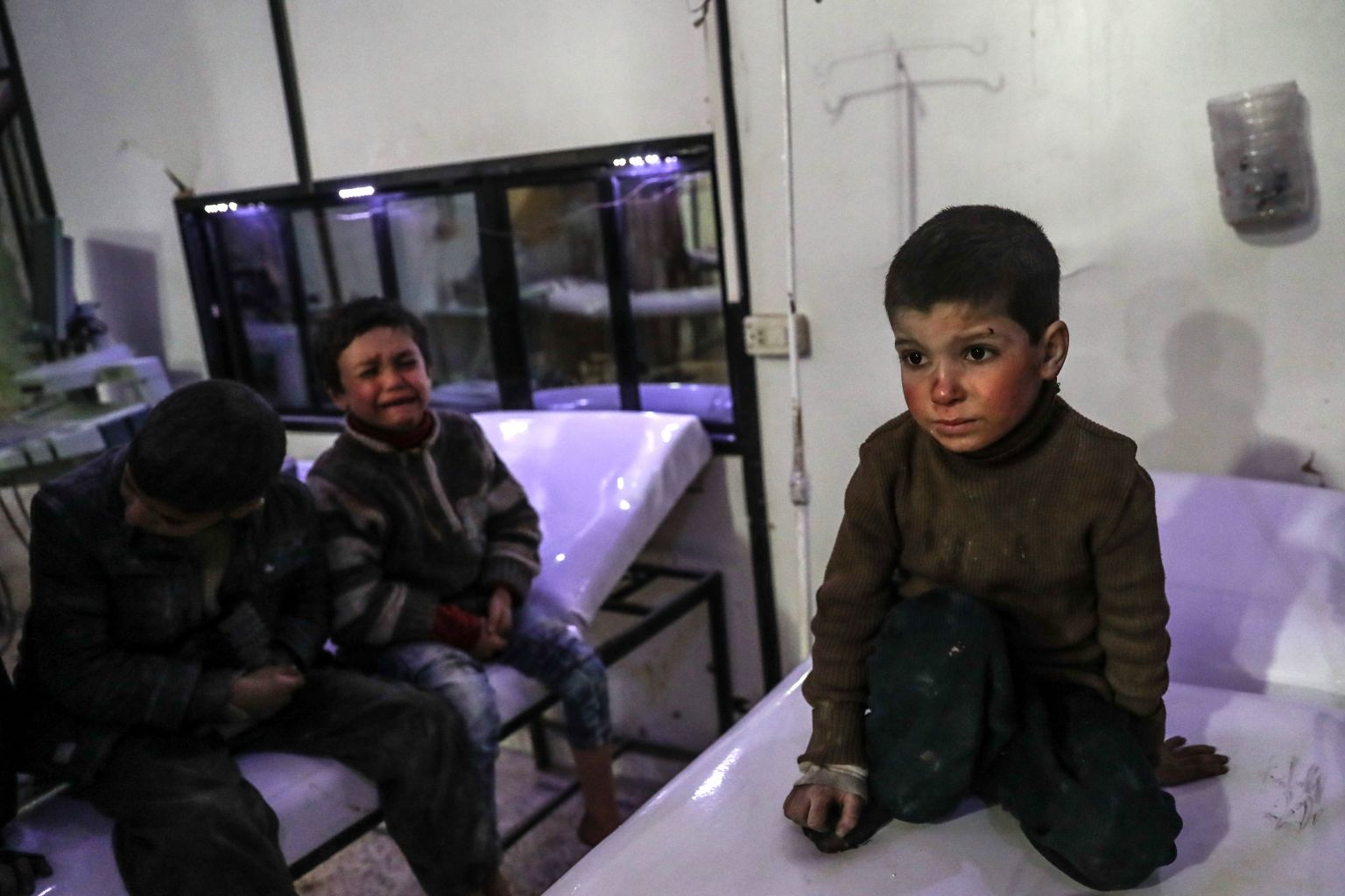 Injured children receiving medical treatment inside a hospital in rebel-held Douma, Eastern Ghouta, Syria, on Feb 19, 2018.