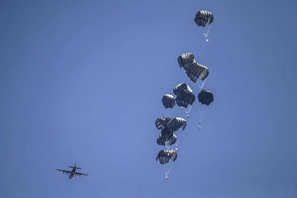 Jordan’s air force drops humanitarian aid over northern Gaza on July 27.